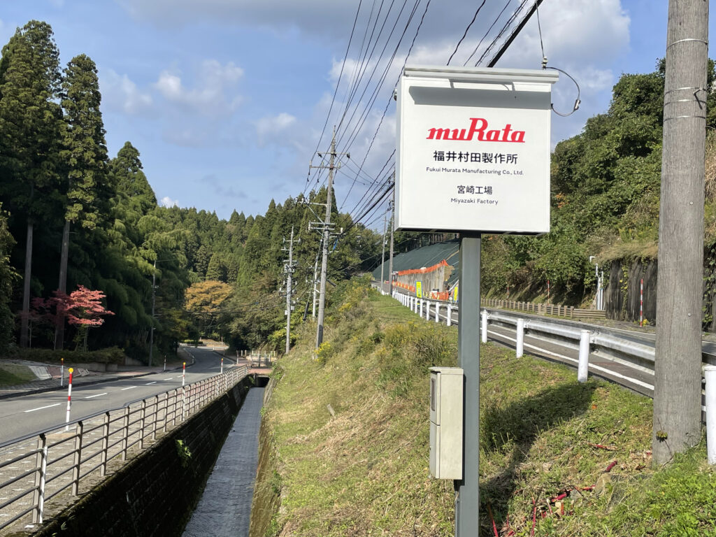 昼食を済ませ、少し時間もあったので近くにあった越前陶芸公園なる所に立ち寄りました。人も少なく落ち着いた感じの公園でした。午後1時、そろそろお目当てのキャンプ場に向かう時間となり、再び車を走らせます。すると、山に囲まれた寂しい道に「村田製作所」の看板を発見。かく言う私も現役サラリーマン時代は同じ半導体業界の会社に勤めていて、親しい友人も勤めていた村田製作所の情報はいろいろと聞いてはおりました。それにしても「えーっ、こんな山奥に村田製作所の工場がある!?」…少し驚き、あまり意味もなく看板の写真をとりあえず1枚パチリ (^^)。