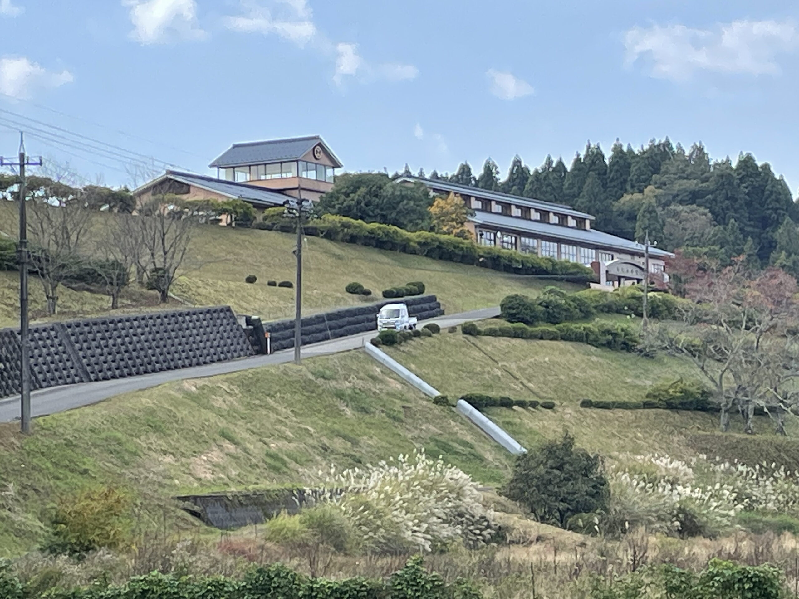 買い物を済ませて越前町に入りました。ちょうどお昼となり、おにぎり2つをコンビニの駐車場で車内昼食、キャンプ場はもうすぐそこ、ここは越前町江波というところです。駐車場から周囲を眺めていると小高い丘の上に何やらモダンな建物が見えます。地図で確認すると「宮崎小学校」とあります。これは小学校なのか... なかなかオシャレなデザインに見えます。ところで、宮崎小学校という名前、昔何となく聞いたような覚えがあります(近くには宮崎中学校もありました)...はて? (?_?)